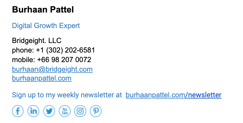 1. Your Email signature. You send emails to people all day. Why not add a call to action to your newsletter, free training, guide, template, challenge or other thing in your signature. If you don't have an offer yet, fine, send them to your website.