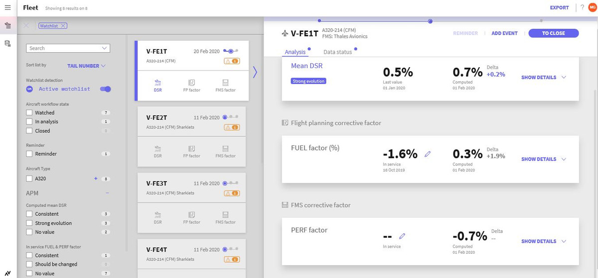Performance Factor Optimizer (PFO) automatically computes the corrective fuel factor representing each aircraft in its current state of performance. This factor is updated in the FMS in the aircraft. This web-based solution automatically computes the ādelta specific rangeā(DSR).