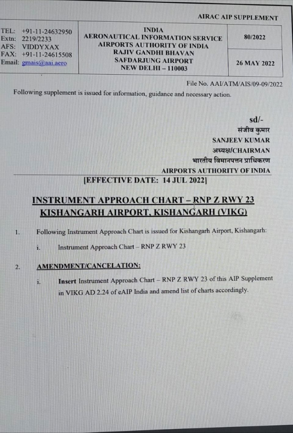 @IndiGo6E became the first Indian Airline to successfully carry out a trail flight at Kishangarh Airport (VIKG) near Ajmer with an ATR72 aircraft using the GAGAN based SBAS.