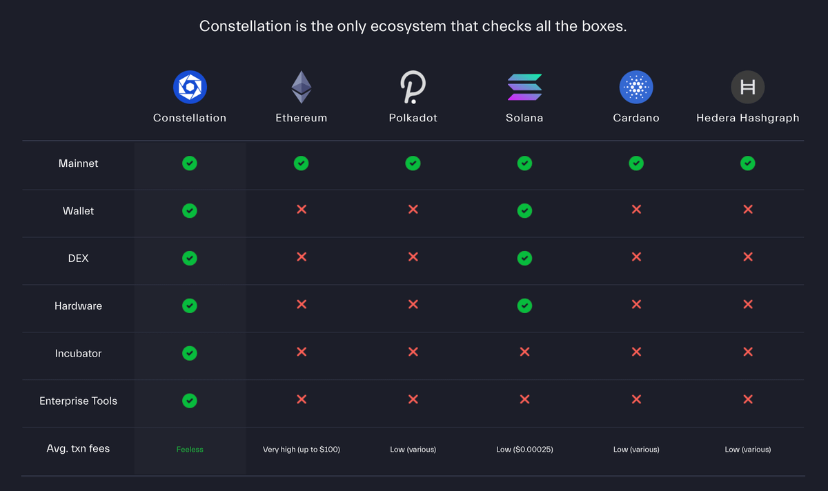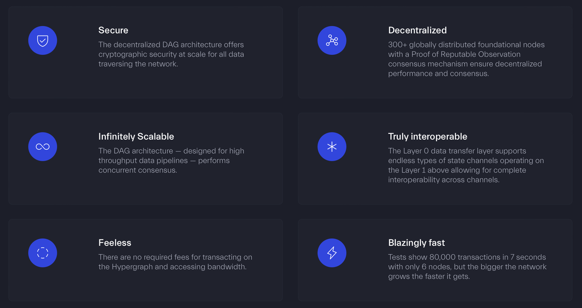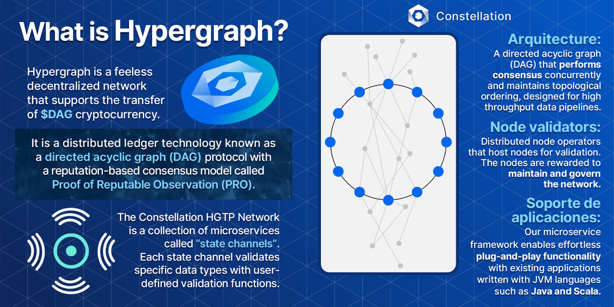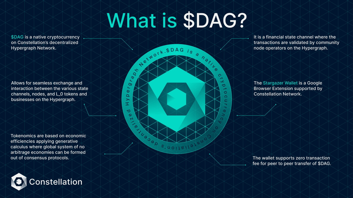 Constellation (DAG) is a protocol that, in theory, enables infinite scalability by utilizing a directed acyclic graph architecture to reach consensus.