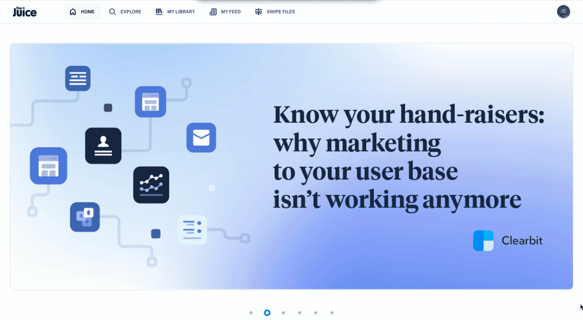 The current way of discovering great B2B content is broken. Spend 5 minutes browsing The Juice and you'll see it's better.