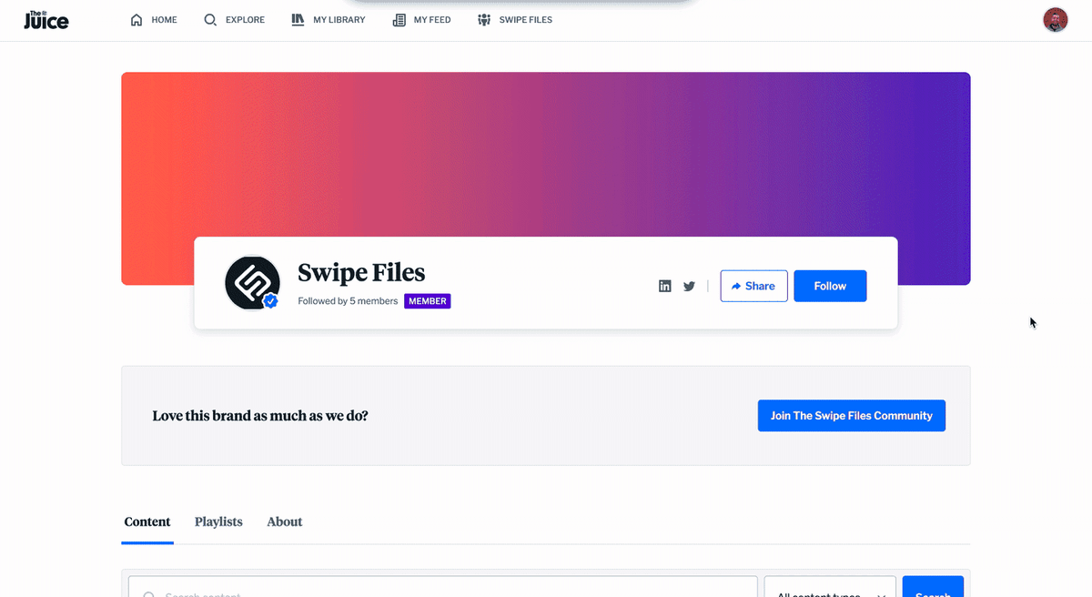 Really stoked to be partnering with @TheJuiceHQ to bring @SwipeFilesco to their platform!