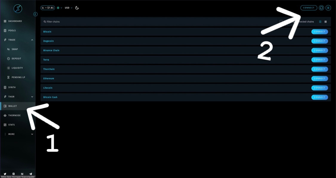 -Click "Thorchainβ select "THOR" complete the steps to connect.