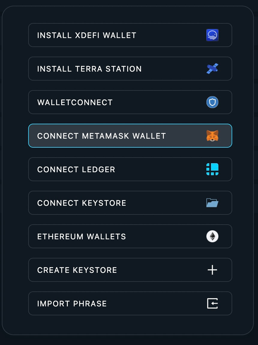 -1st connect to your non-THOR wallet, in this ex. I use $ETH/@MetaMask & connect normally.