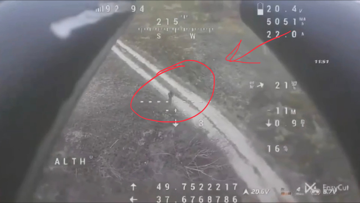 Russian Infantry Targeted by Ukrainian Shotgun Drone