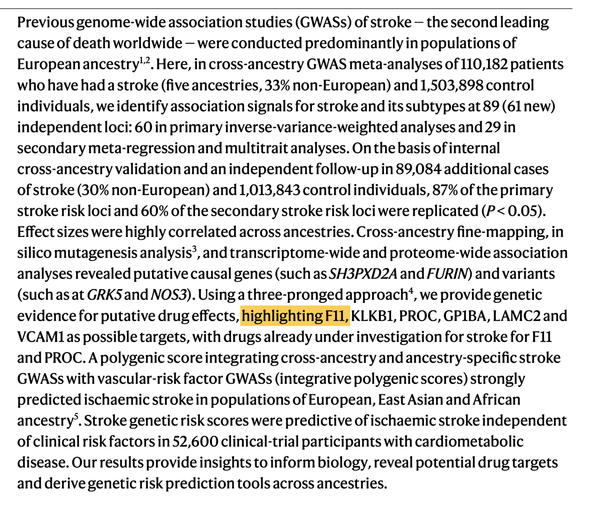 It's nice to see all these genetic evidence surface, but drug developers are way ahead in the pipelines. Many clinical trials are ongoing as we speak to test the efficacy and safety of F11 inhibitors in the treatment of stroke and other related diseases.