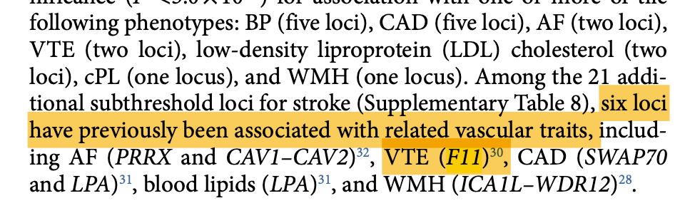 However, F11 locus officially becomes a GWAS hit for stroke in the current paper that involved >200k cases and ~2 million controls.