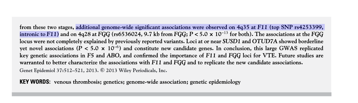 Nevertheless, as a human geneticist I simply enjoy just observing the genetic discoveries as they unfold over time confirming the known F11 associations and possibly revealing new genetic mechanisms.