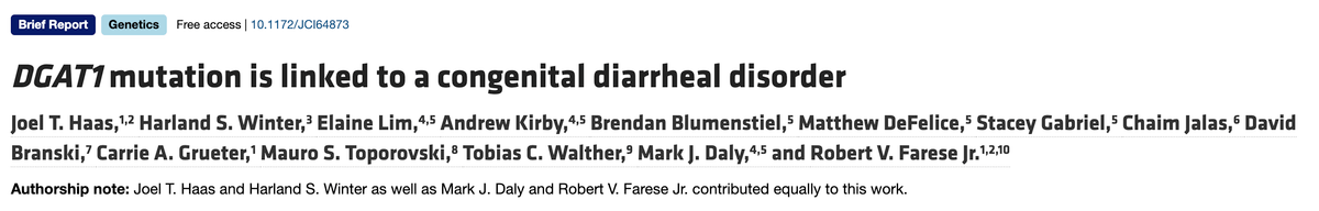 The part of the DGAT1 story that interested me most is a case report on two children who were were knockouts for DGAT1 published in JCI in 2012.