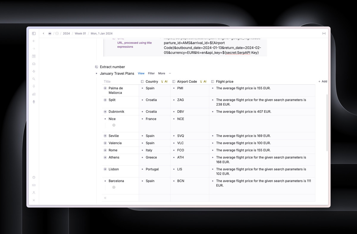 This is much faster than going into Google Flights myself and checking all the prices, plus when I change something, I can update it all.