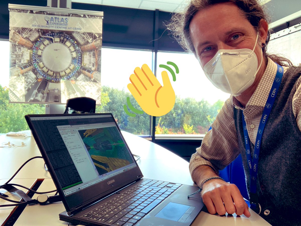 “Hello” from the ATLAS control room, while looking at new data!👋