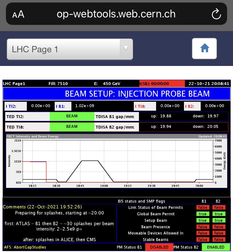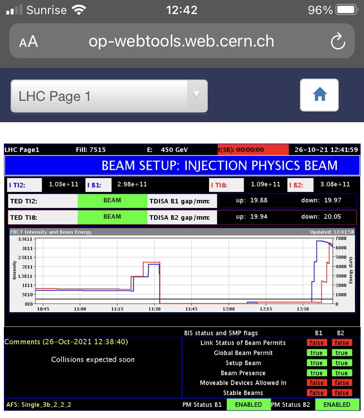 There’s a public web page, known simply as “LHC Page 1”,showing you the status of the particle beams in LHC in real time!💥