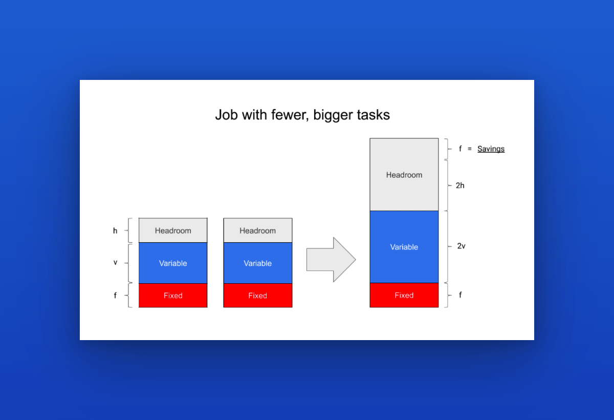 단순하게 접근해보면 돌아가는 서비스는 고정비용 - binary/logging/monitoring 등 - 이 존재하고, 서버가 커질수록 때마다 서비스 전체에 고정비용이 차지하는 비율이 낮아진다.