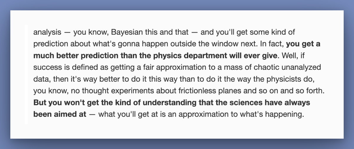 춉: "통계적 접근의 성공은 인정. 하지만 과학이 추구하는 상호작용의 이해와는 거리가 멀다"
