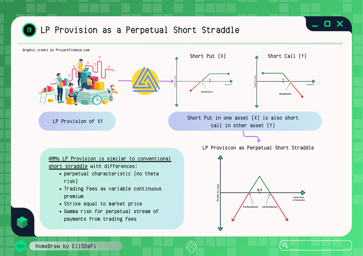 In addition, it is worth noting that LP provision can be conceptualized as a perpetual short straddle strategy.