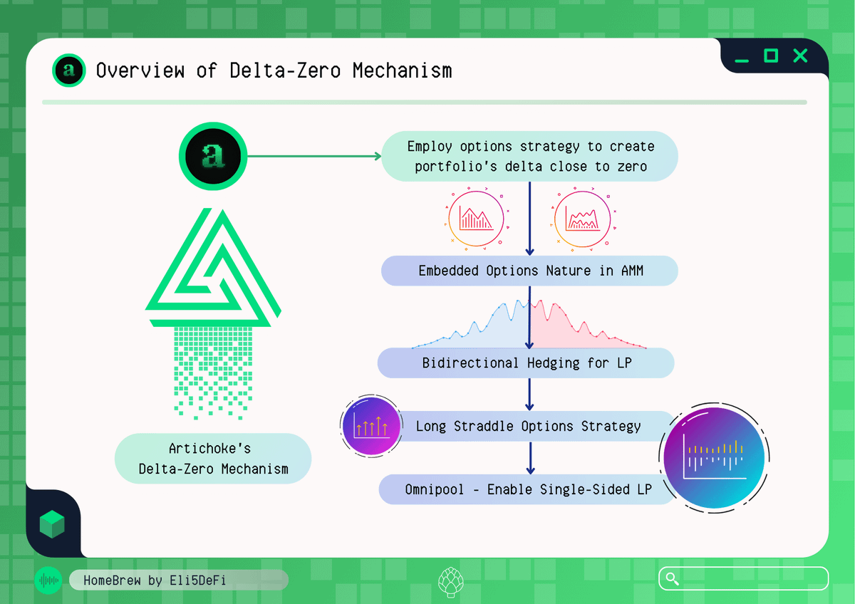 The forefront of @artichoke_fi protocol features the Delta-Zero mechanism, which reimagines hypothetical embedded options in LPs.