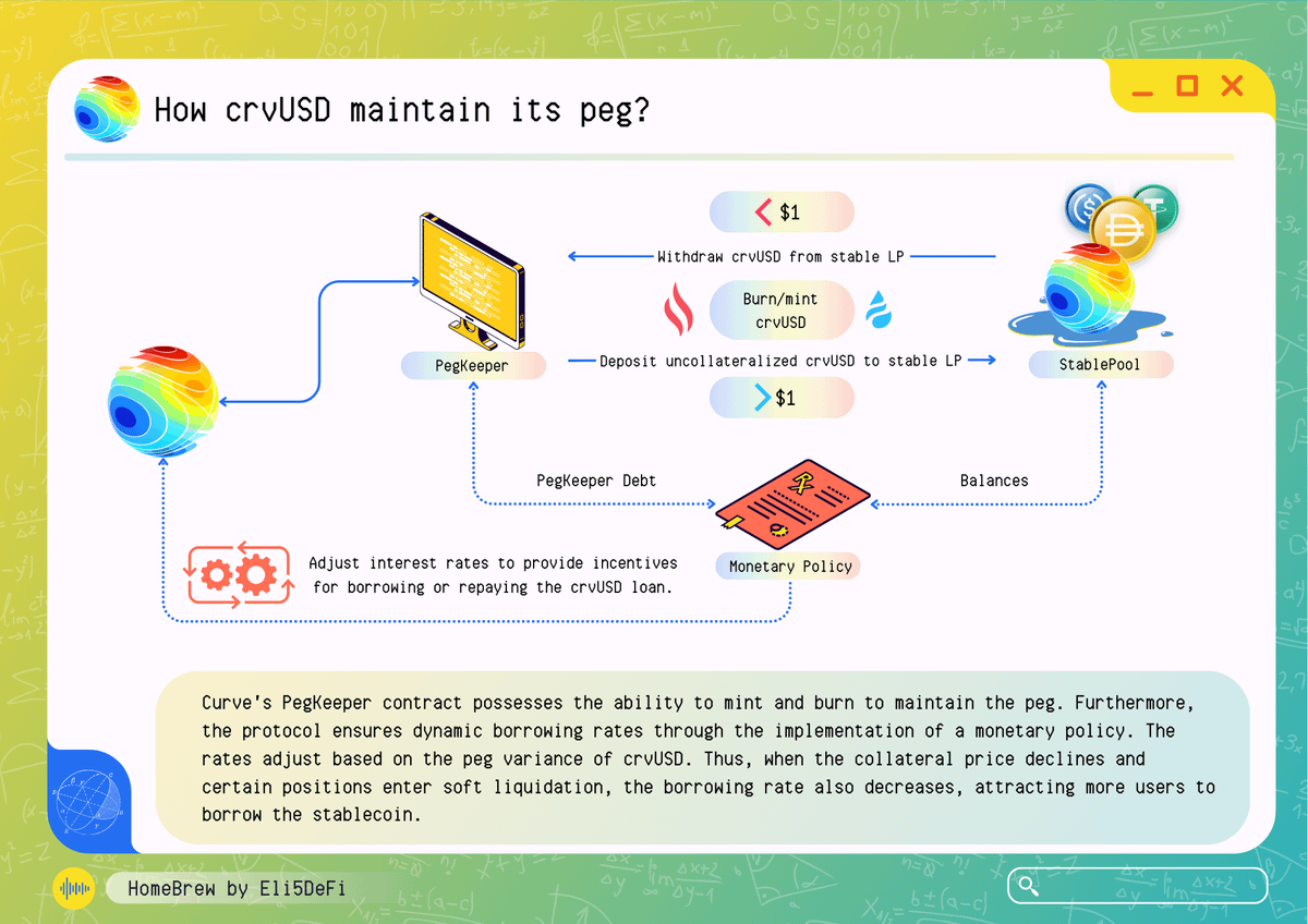 $CrvUSD, a stablecoin developed on @CurveFinance, utilizes a unique AMM algorithm called Lending Liquidation AMM Algorithm (LLAMMA).