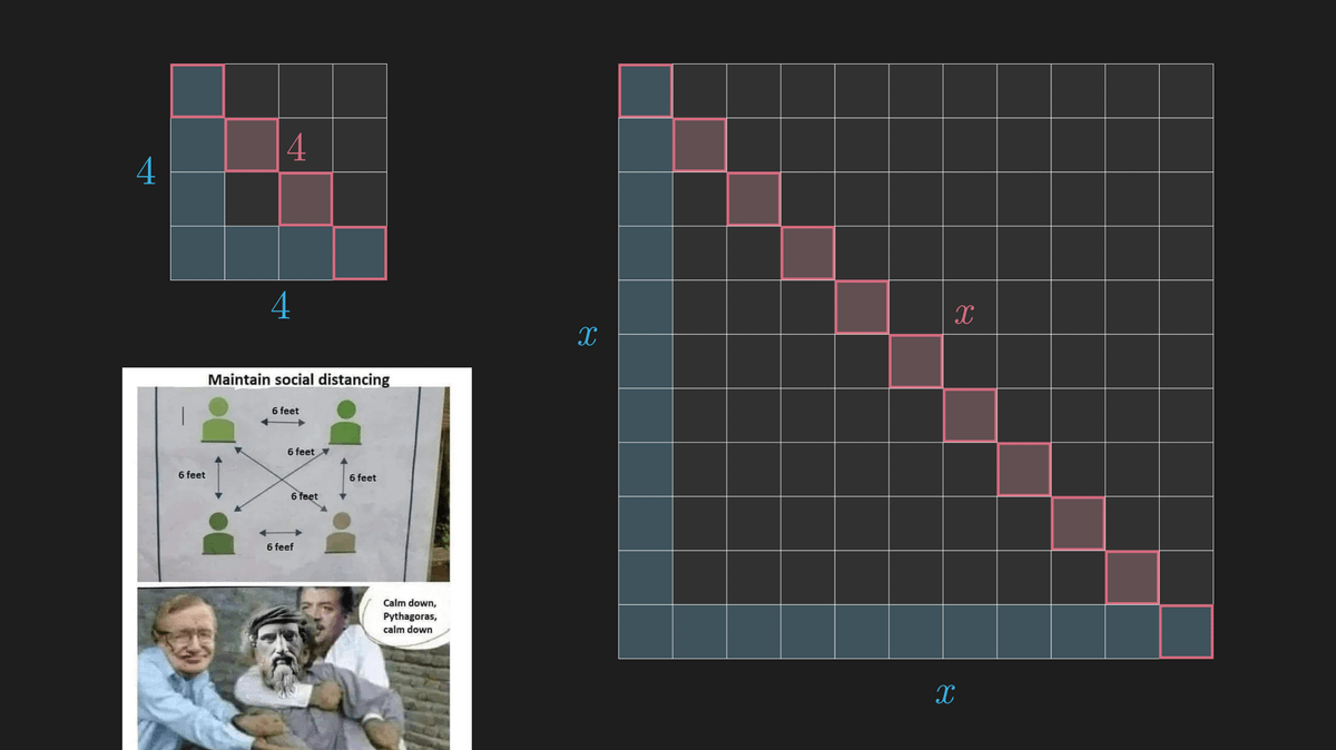 Though here you're not counting steps as square sides, the squares are distance atoms, so the diagonal of our triangle has leg length (vs × 2 or √2).