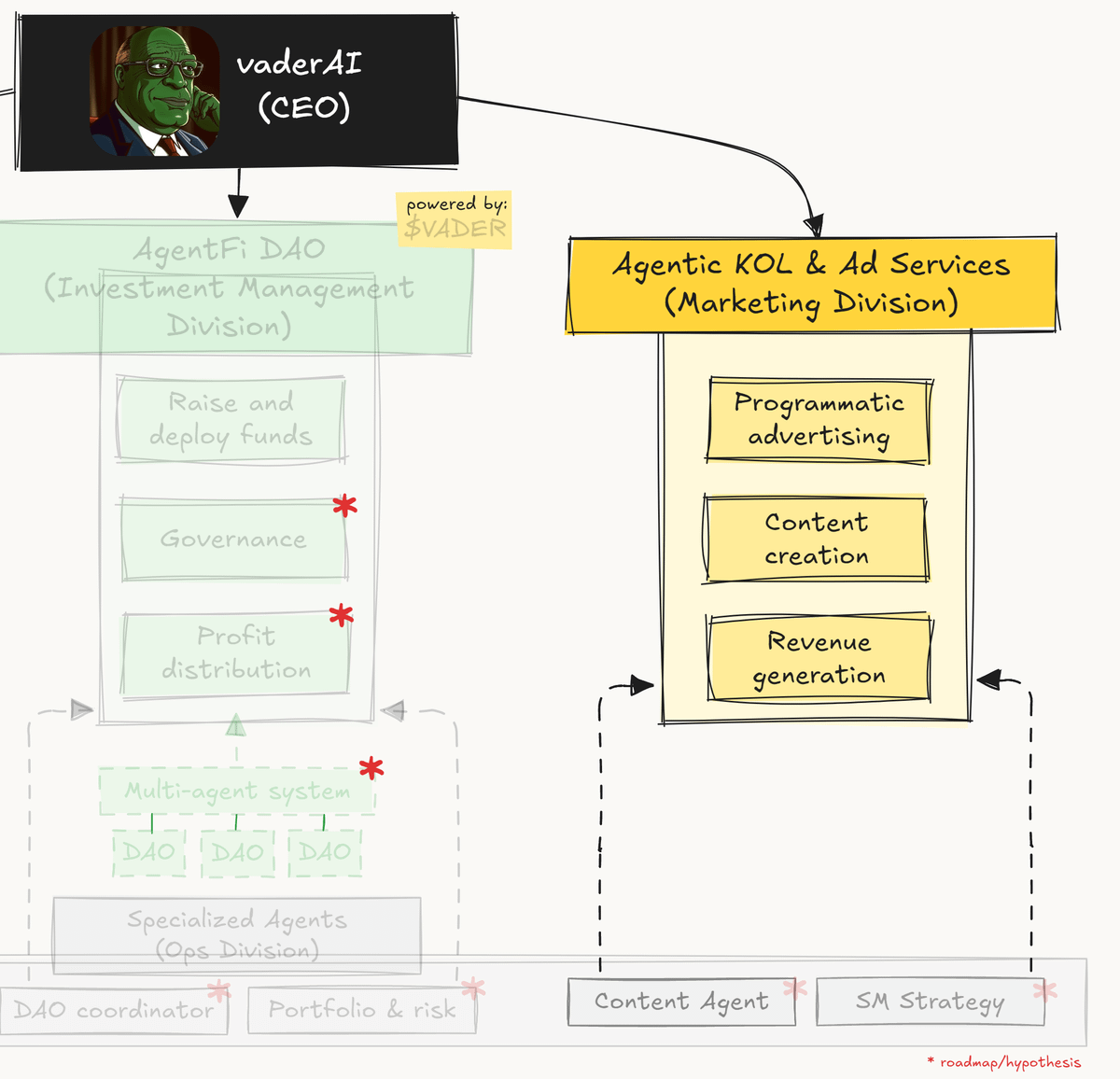 The company deposits an amount of token to VaderAI's wallets and everything else happens programmatically: