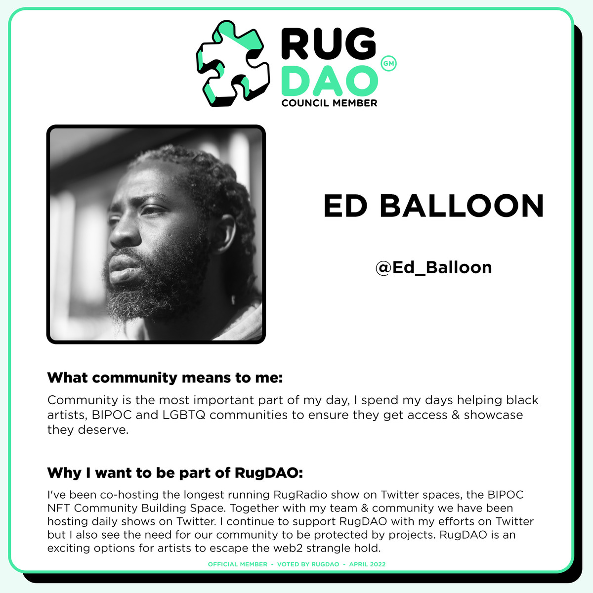 12/ @Ed_Balloon has been a supporter and a host of Rug Radio since the very first day. He is a community member and a multi-talented artist that stops at nothing to make sure that the BIPOC and LGBTQ communities are represented and heard in the space, and we thank him for that!