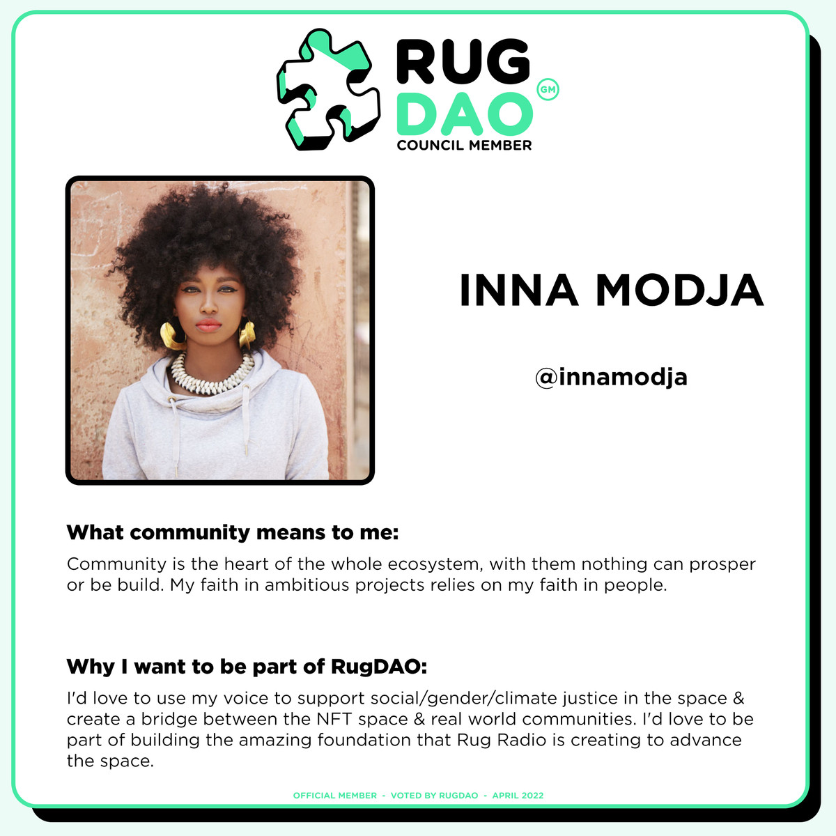 9/ @InnaModja is an artist, a community builder and a climate and gender activist. Inna serves as the Head of Philanthropy at World of Women and a UN Climate Ambassador!