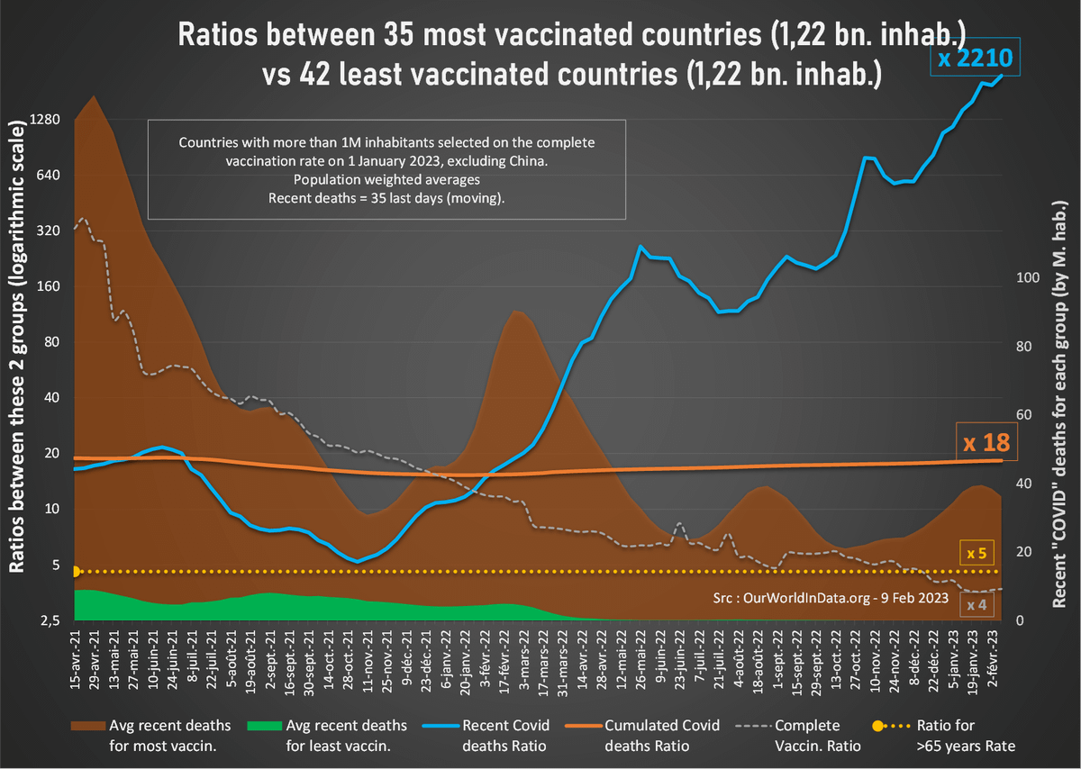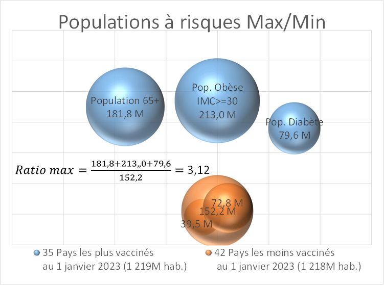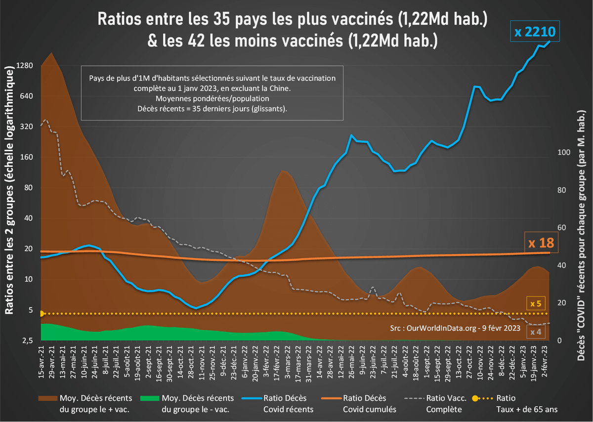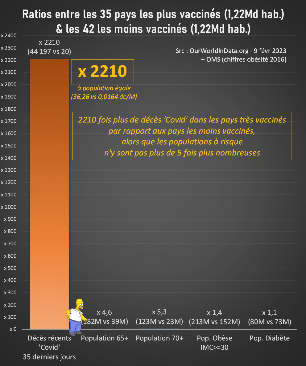 4. Même si ces 474M de populations à risque du 1er groupe, artificiellement cumulées, étaient comparés aux seuls 23M de plus de 70 ans du 2d groupe, le ratio culminerait à… 20 !🥴