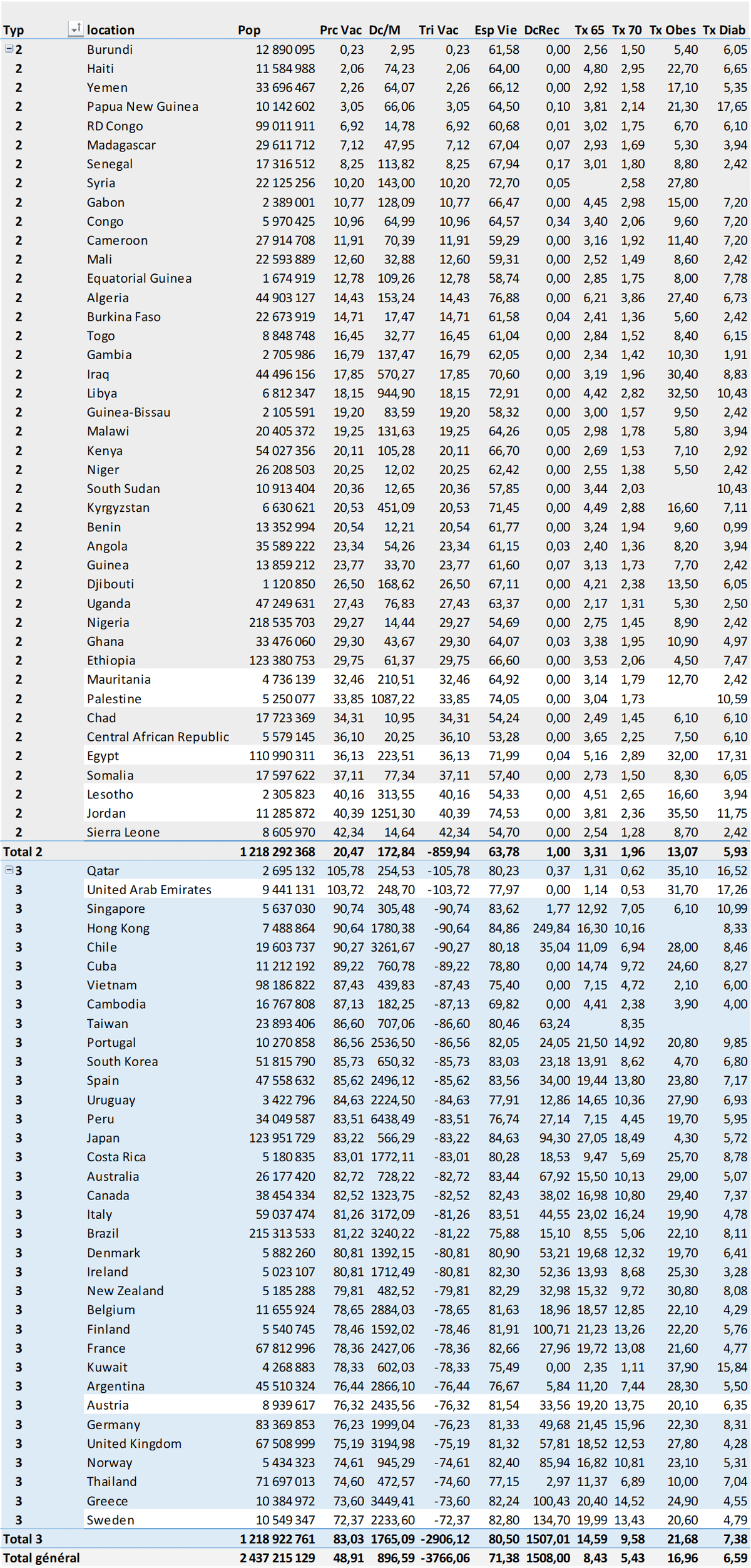 14. Mais une syndémie bizarrement beaucoup moins présente dans les pays moyennement vaccinés, et pas du tout épargnés par le Covid jusqu'à fin 2021.