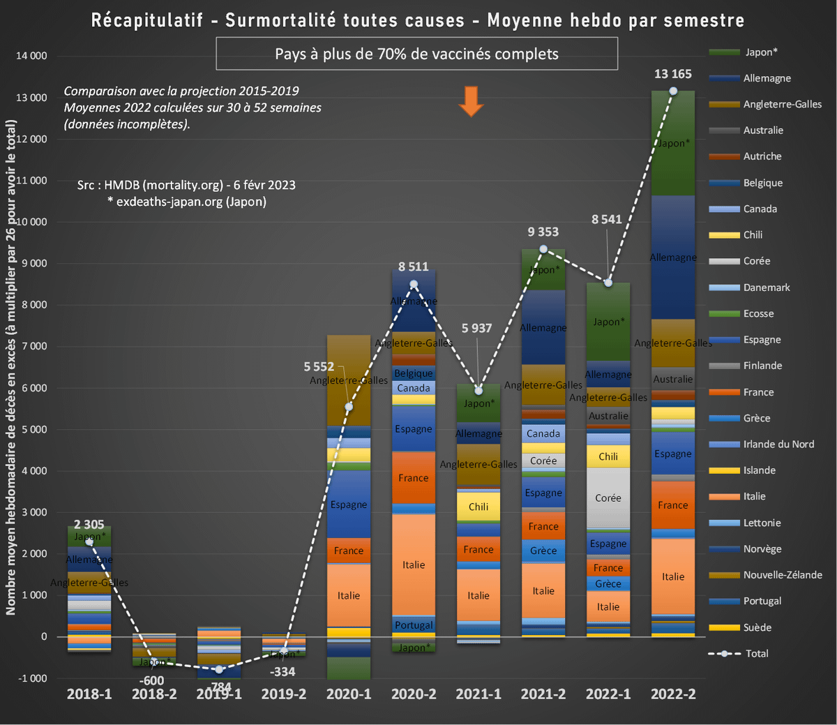 13. Quant à la très étrange surmortalité toutes causes, malheureusement disponible uniquement dans des pays largement vaccinés, on tente de nous l'expliquer par une syndémie de Covid agissant sur la très longue durée.