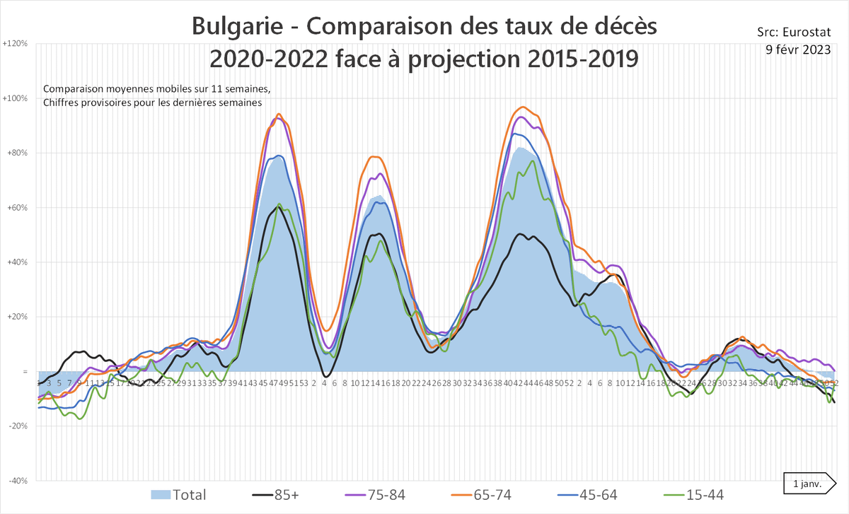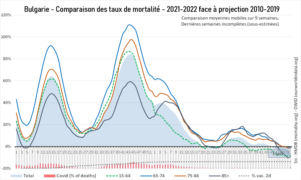 3. Mais 2 pays se distinguent : la Bulgarie (~30%) et la Roumanie (~42%) de vax° complète, même si ces chiffres qui n'arrêtent pas de varier semblent plutôt tirés vers le bas.
