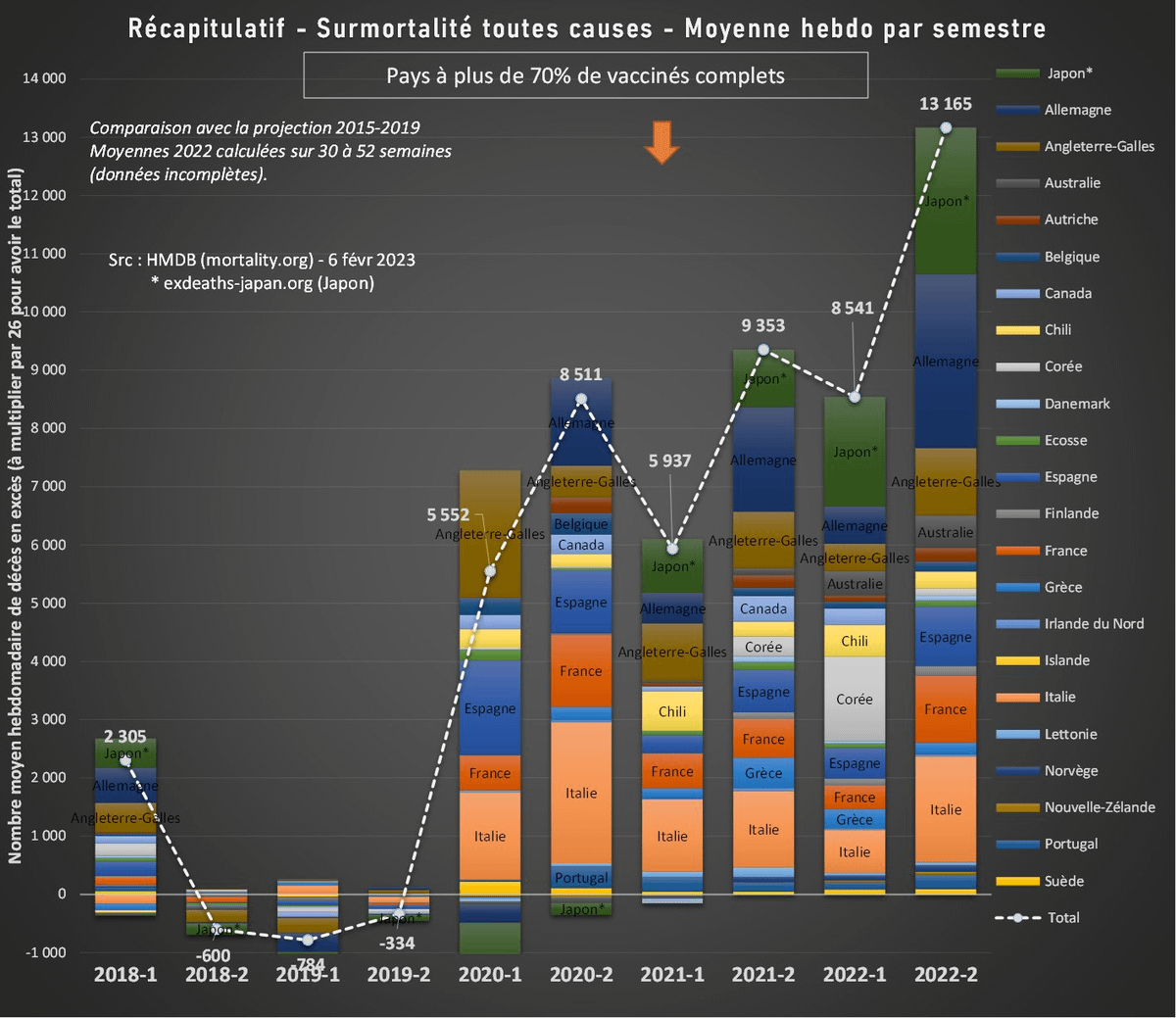 1. Retour sur les "effets à long terme du Covid" (incluant "syndémie", retards de soins, etc.) qui sont supposés expliquer la surmortalité croissante touchant bizarrement davantage les pays les plus vaccinés.