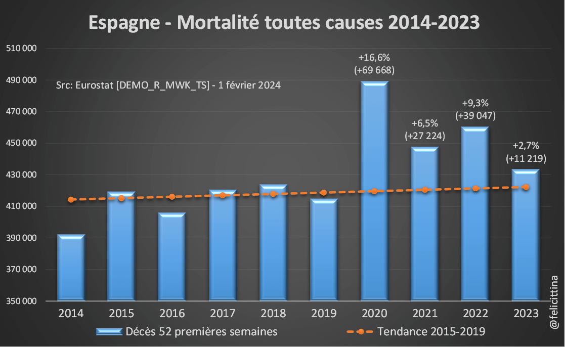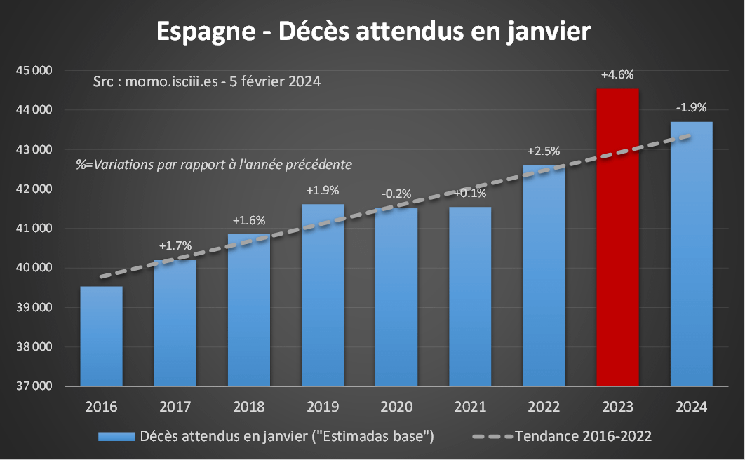 Voici ce que donnent pour les mois de janvier de chaque année, les nombres de décès attendus trouvés sur momo.isciii.es/panel_momo