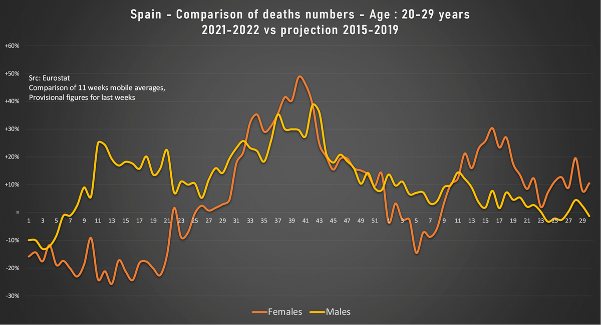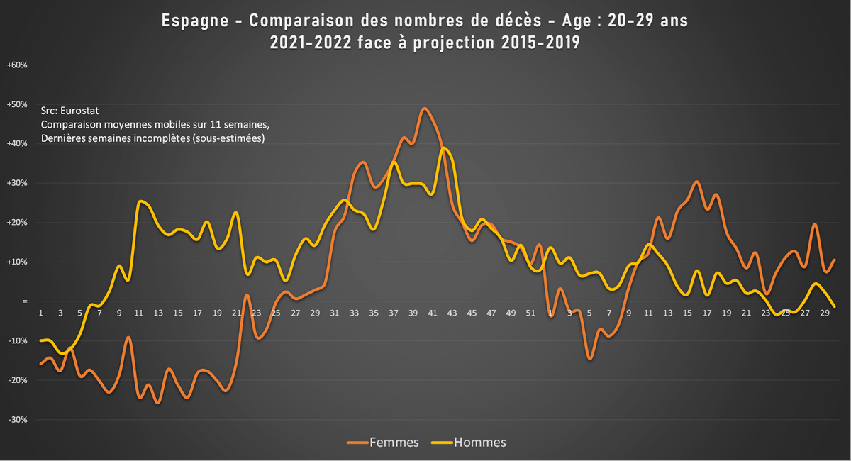 5. Espérons que cette estimation soit trop pessimiste, car, jusqu'à présent, ce sont les + jeunes qui ont subi les + fortes augmentations de mortalité (en variation, heureusement pas en nombre de décès). Et elles ont tendance à + toucher les JF en 2022, après les JH en 2021.