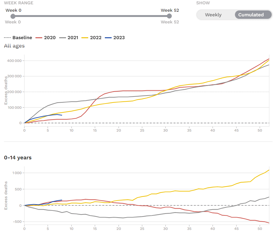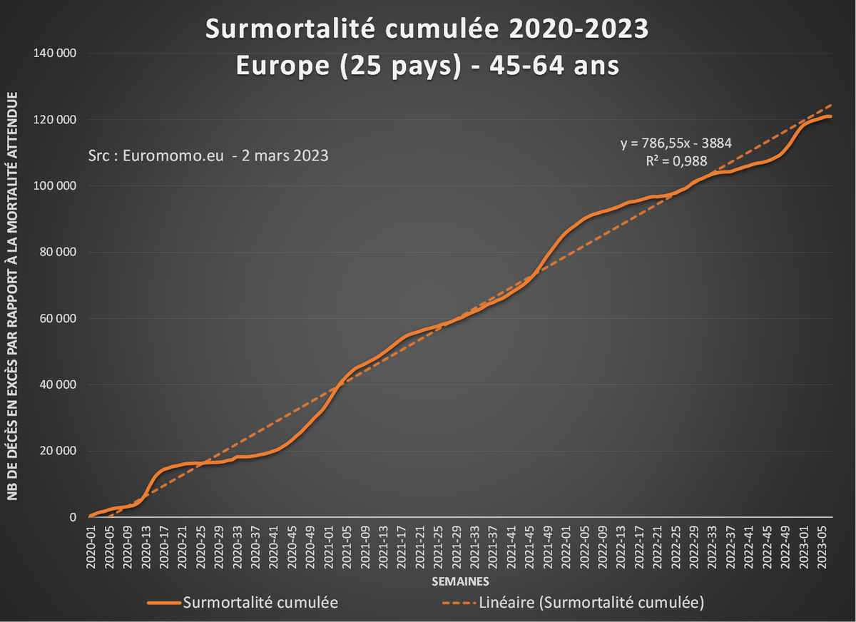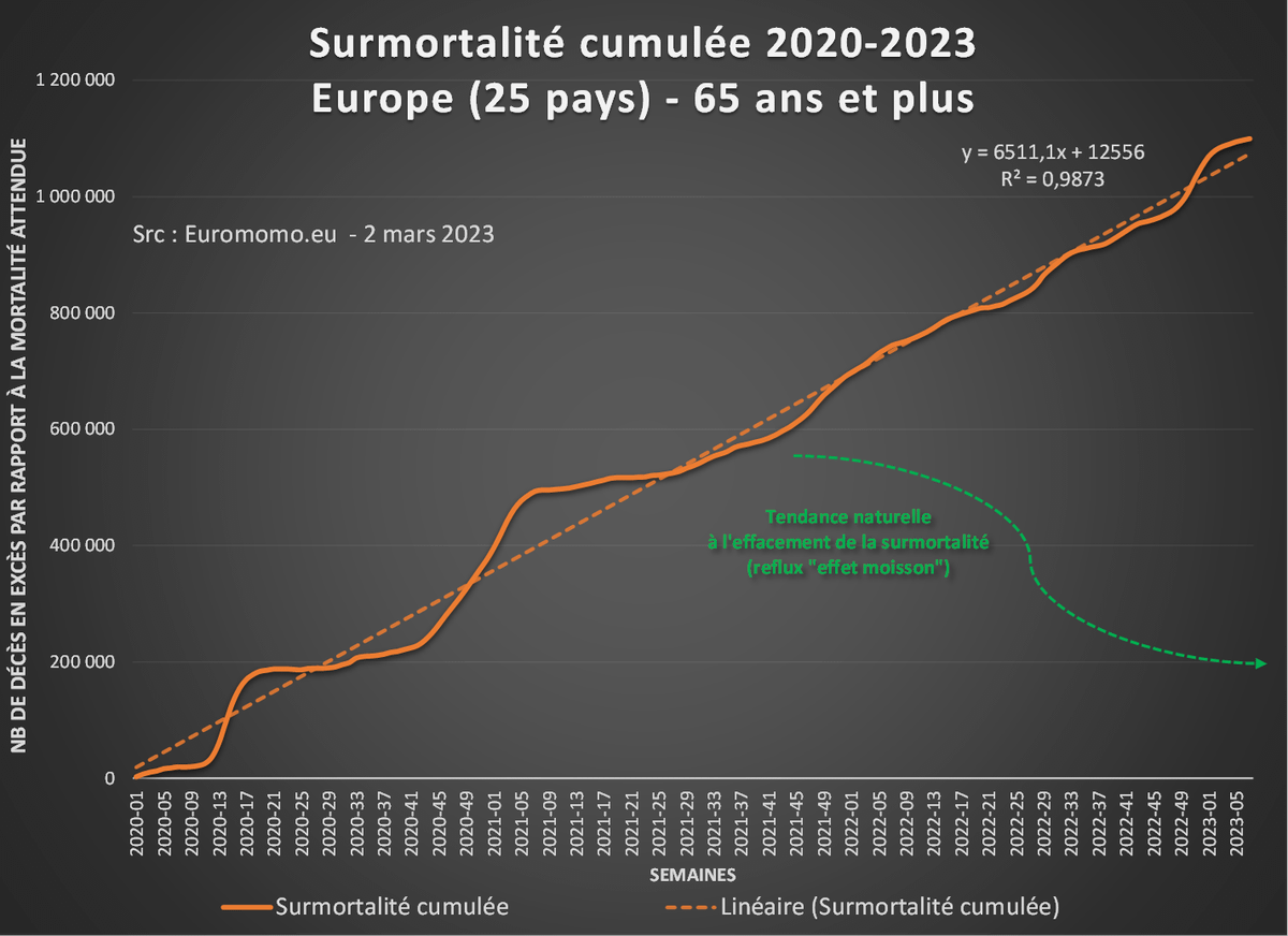 1. Chiffres du jour d'#Euromomo, qui persiste et signe dans sa politique de "désinformation". 🧐 Combien vais-je encore avoir de "savants" qui vont s'esclaffer en proclamant qu'une surmortalité cumulée, ça ne peut pas diminuer ?🙄 …/… twitter.com/felicittina/status/1616117786870419460