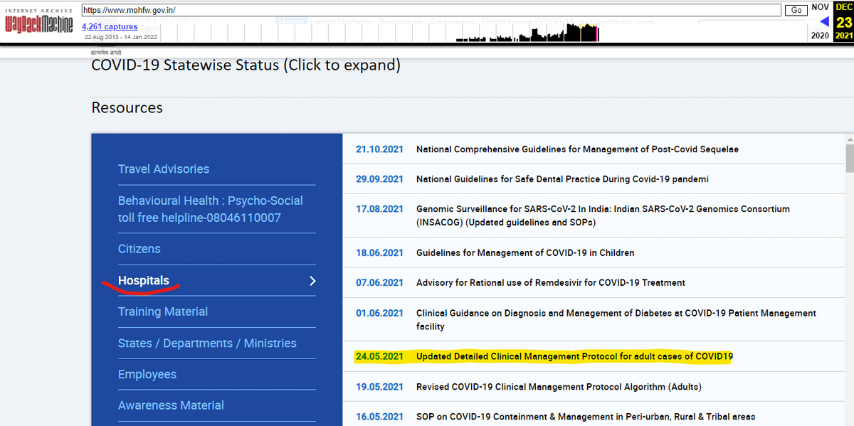 3. Mais le 24 déc. @ICMRDELHI & @aiims_nd, organes de conseil et de recherche, beaucoup plus sensibles aux arguments de l'OMS, ont enfin réussi à faire référencer leurs recommandations, sans toutefois réussir à faire disparaître le protocole complet.