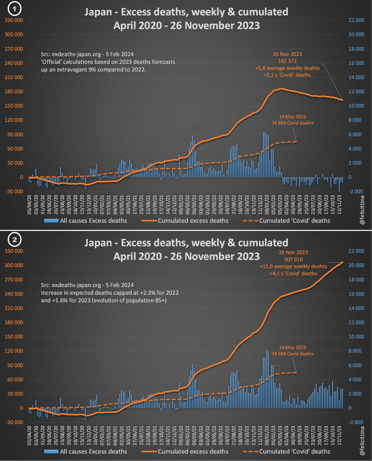 For those who wish to verify these calculations. Weekly data can be downloaded below the graph ( exdeaths-japan.org/data/Estimates_weighted.csv ).