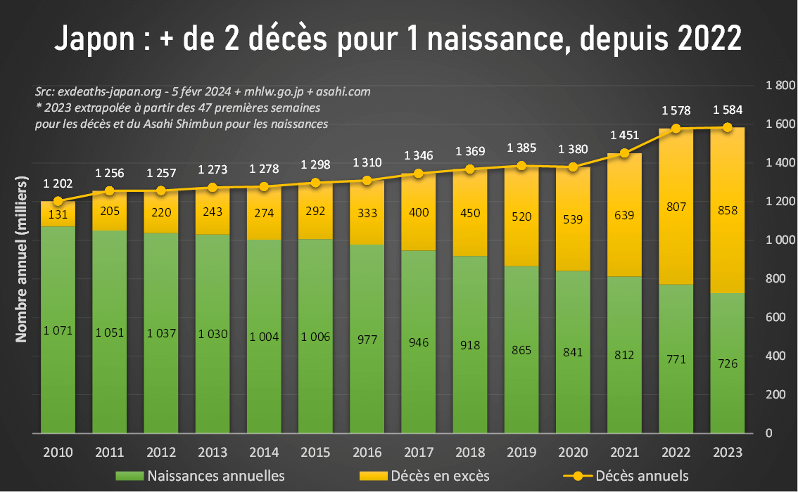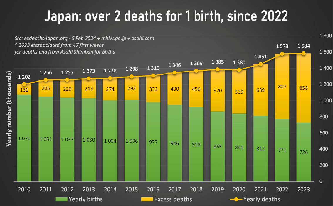 🇯🇵 On comprend un peu mieux pourquoi le #Japon tient à ce point à masquer l'augmentation anormale des décès, lorsque l'on compare ceux-ci aux naissances.
