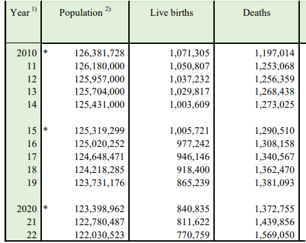 Exprimé par rapport à la population de 122 millions d'habitants, le déclin annuel n'est certes que de 0,7% mais ce % ne va aller qu'en augmentant 😨