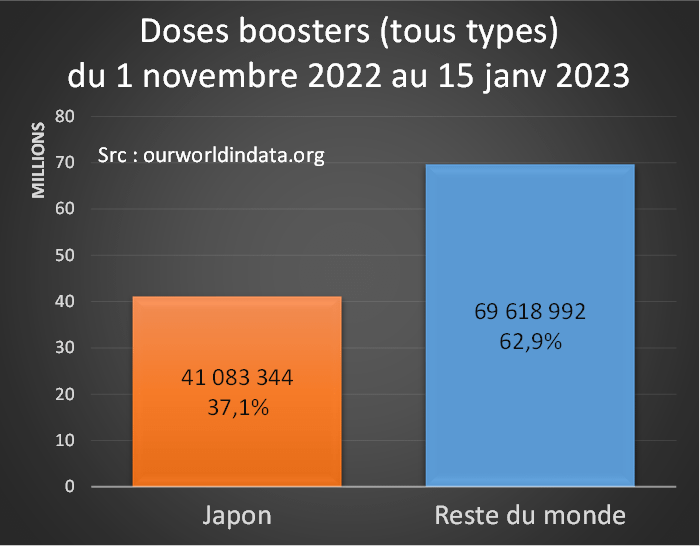 2. Même si les chiffres du reste du monde sont incomplets, ils incluent tous types de boosters alors que ceux du Japon sont quasi-uniquement des bivalents.