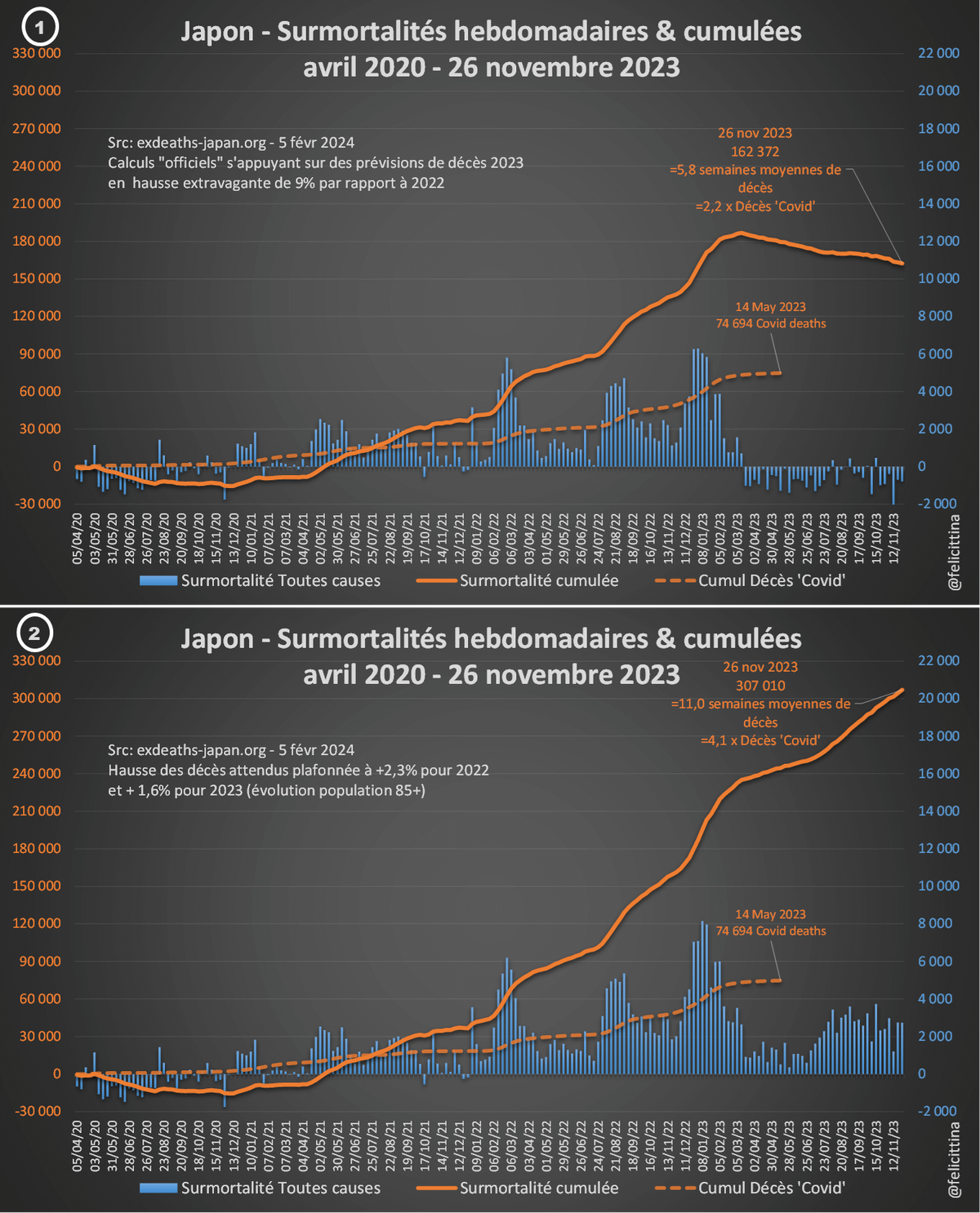 1️⃣ En 2023, il s'agit de faire croire à un début de correction des surmortalités accumulées.
