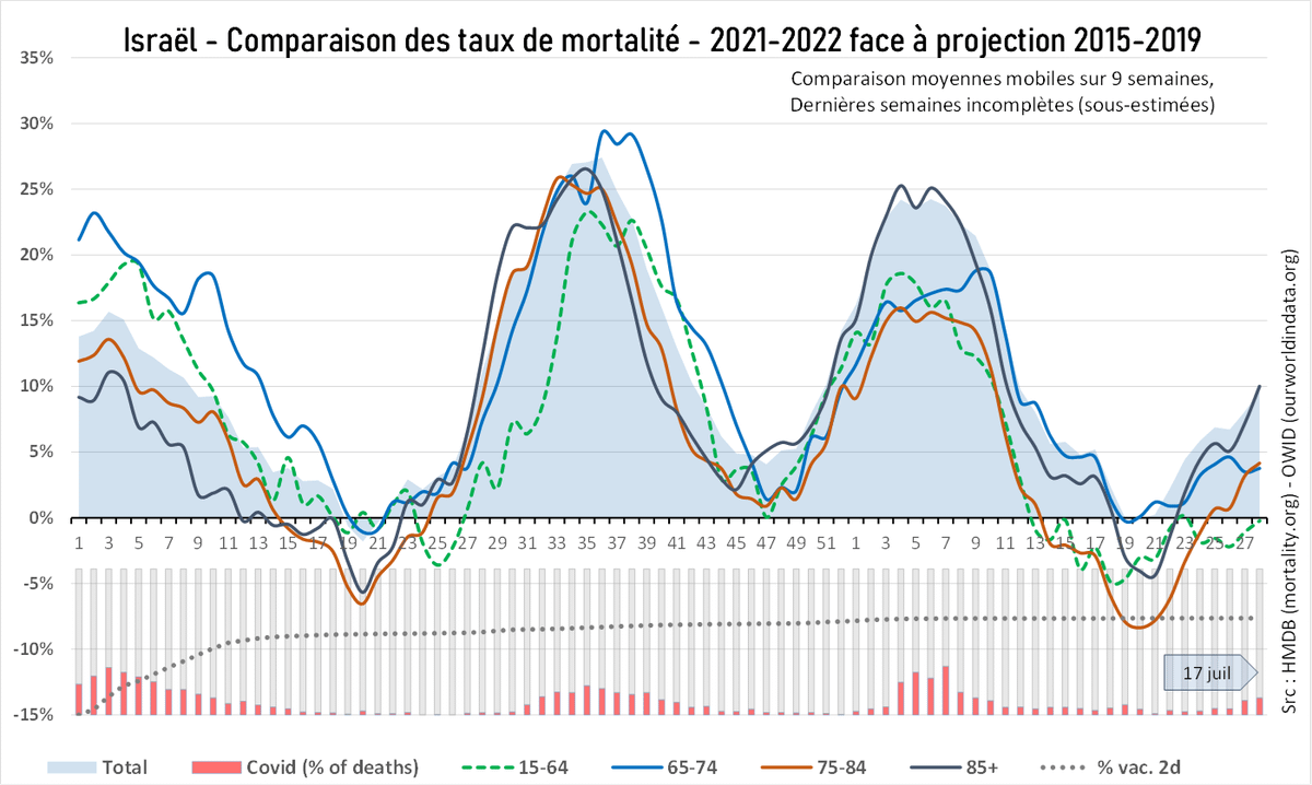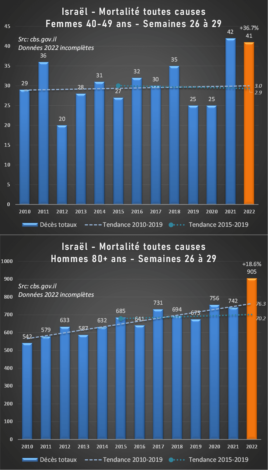 Et des tendances moindres en % pour les plus âgés, mais plus significatives vu le nombre de décès constatés.