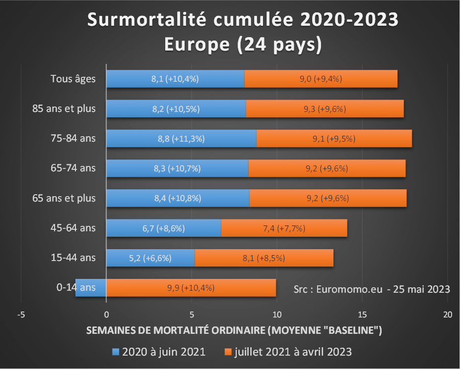 Et toujours impossible d'incriminer les mauvais élèves européens en matière d'ARNm (Bulgarie, Roumanie, Slovaquie, Serbie…) car tous ces pays restent inconnus d'euromomo.