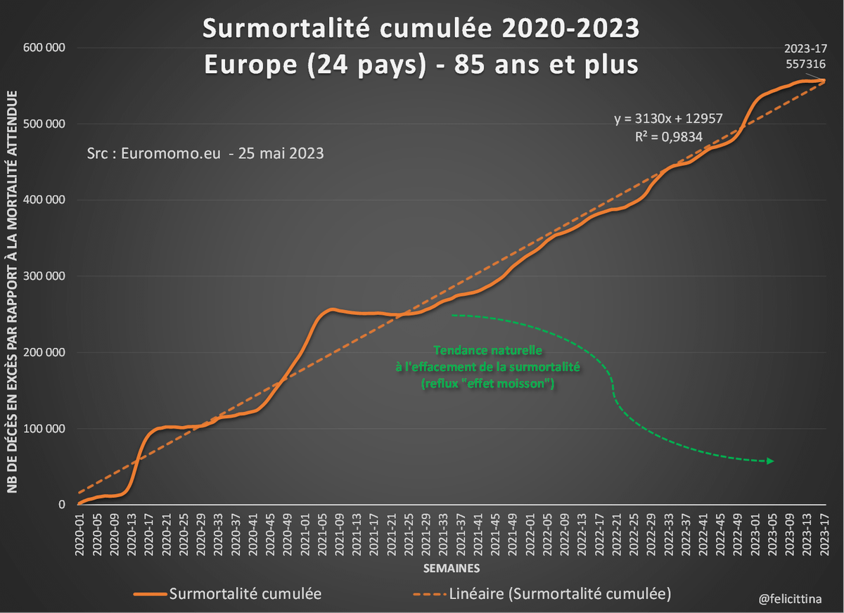 Ces courbes sont obtenues tout simplement en raccordant les courbes annuelles de surmortalité cumulée d'#euromomo.