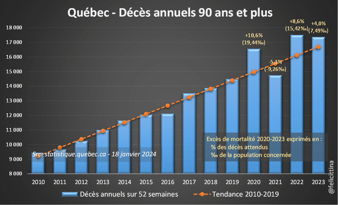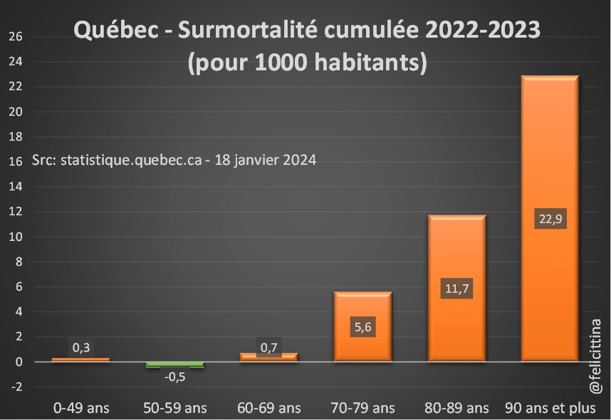 Certains ont vu une preuve évidente de l'innocuité de la vacc° dans la surmortalité constatée au #Québec :
