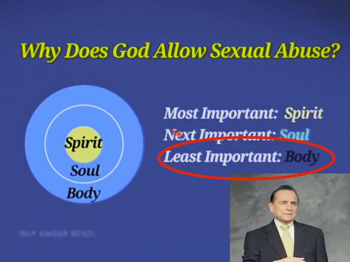 It minimizes in their minds and the minds of their followers the impact of molestation and rape, because it “only” happened to their bodies, and if they just pray and/or submit, they’ll understand that it need not have an impact on their spirits or souls.