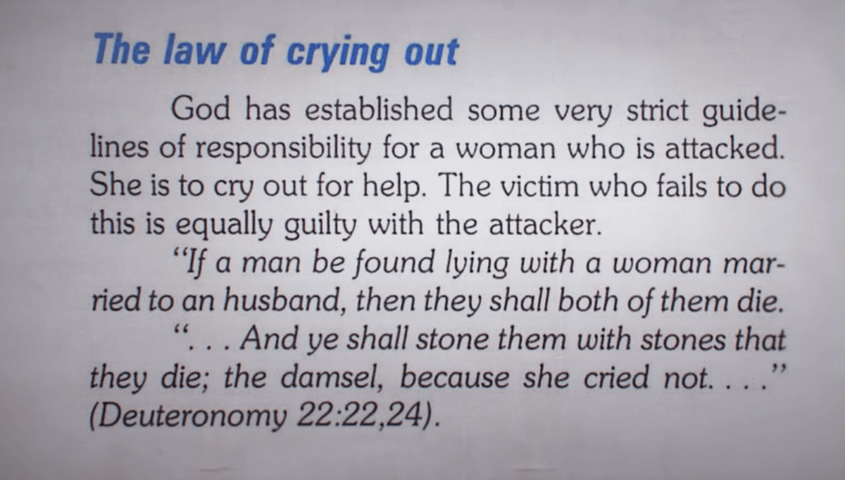 It is not hyperbole to state that this one made me nauseous. If a victim doesn’t cry out, he or she is “equally guilty with the attacker.” This is further abusing the abused.