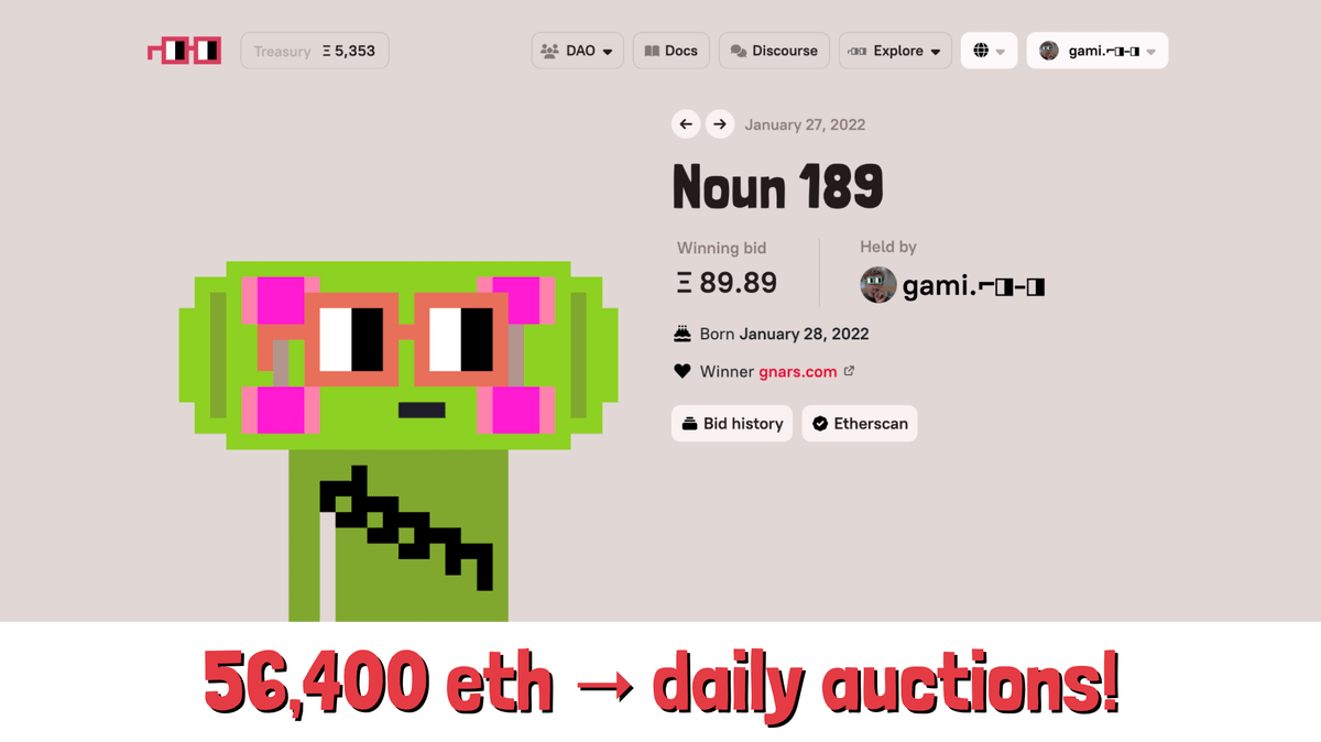 ~ $175m usd in daily nft auctions to a treasury directed by noun owners / delegates we've funded lots of ideas at