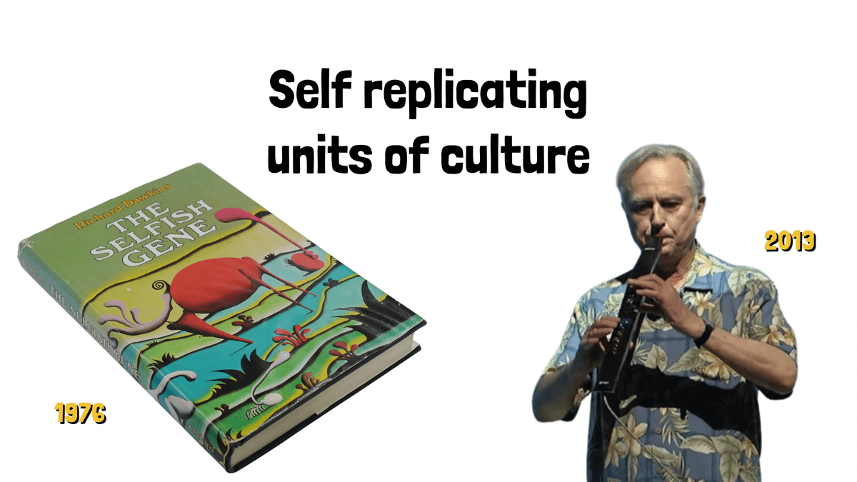 the term "meme" was coined by richard dawkins in his 1976 book on evolution, "the selfish gene."