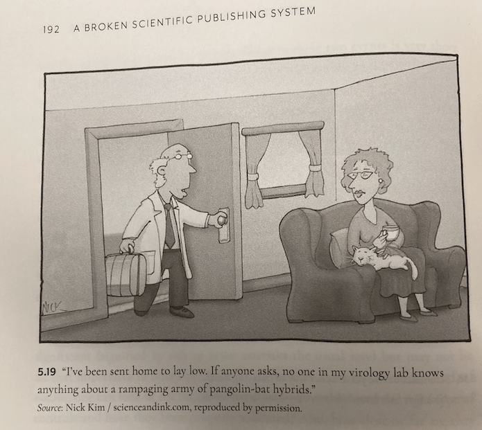 “I've been sent home to lay low. If anyone asks, no one in my virology lab knows anything about a rampaging army of pangolin-bat hybrids.”