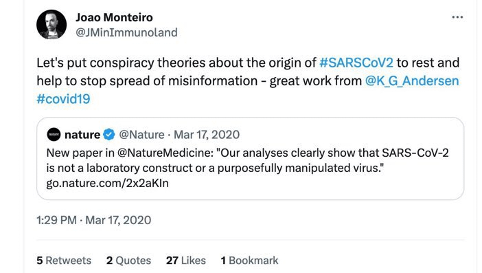 I have just found out that Proximal Origin is listed in 'Unreliable' (Csaba Szabo, Columbia University Press) as a recent example of a biased review article.
