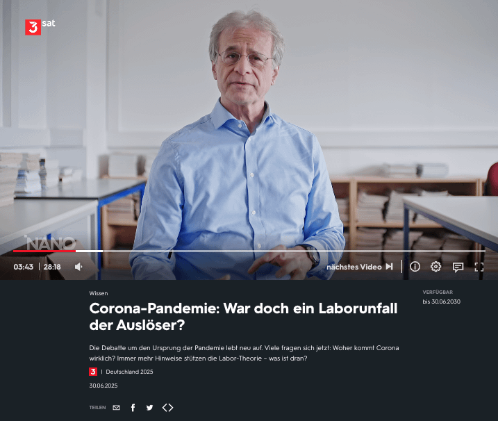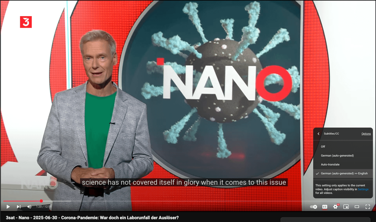 Important reporting on the Covid origin debate on Nano, a good German TV science program (3sat & ZDF).